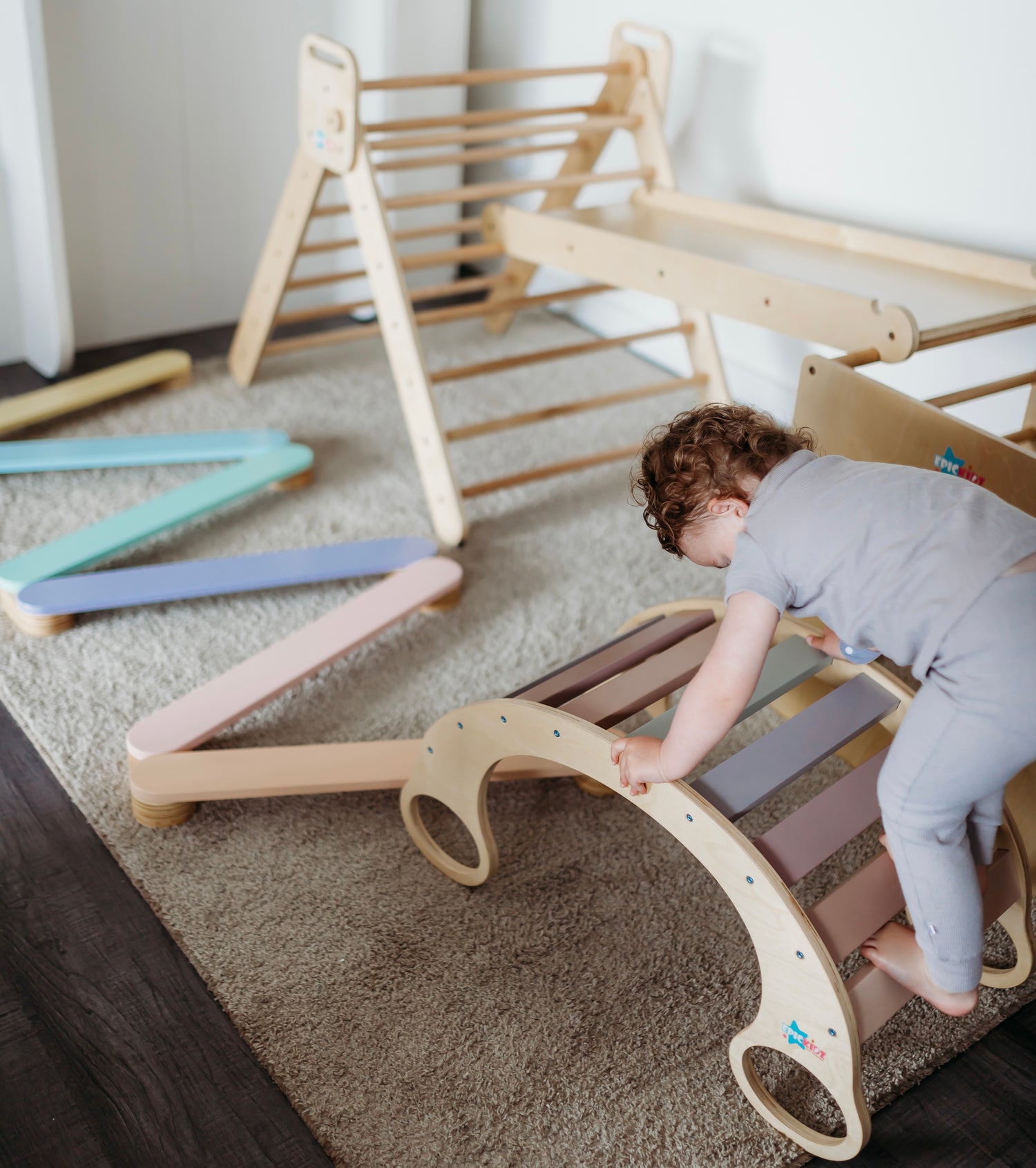 Our Montessori-inspired products can support up to 50Kg, with the exception of our balance boards which can support up to 90Kg.
