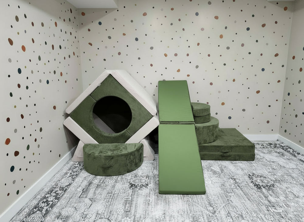 Unlike most other play couches on the market, all of our play couches and add-ons are made of foam with a density of 1.9lb/ft3 @ 60ILD. This makes for sturdy forts, more stable creative builds, and comfortable seating that won't have you sinking to the floor (because play couches aren't only for the kids!)