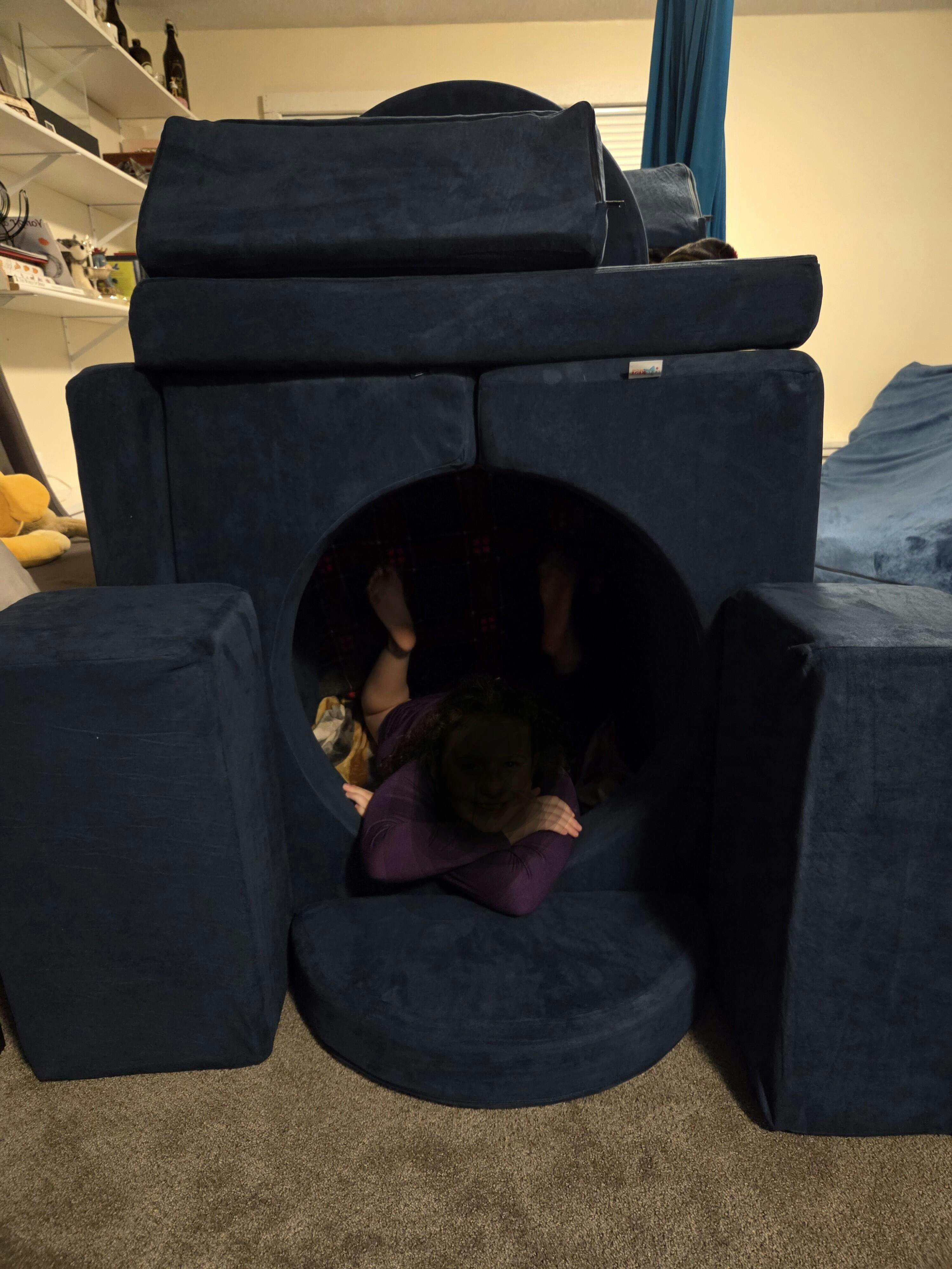 We're thrilled with our new Epic Fort Building Play Couch. The kids live on make believe play, and this couch can be turned into so many configurations that complement their play worlds. It's also been great as a retreat area for when a kid needs extra downtime - they just create a little cave to hide in. It's comfy for adults too, and we build our own lounge chairs for movie watching when the kids are asleep. The best part is that you can wash and dry the removable covers - all while still having the waterproof liners protect the couch (you never know what will happen with kids if there's no protection). This couch was definitely made by a family for families. We couldn't be happier!