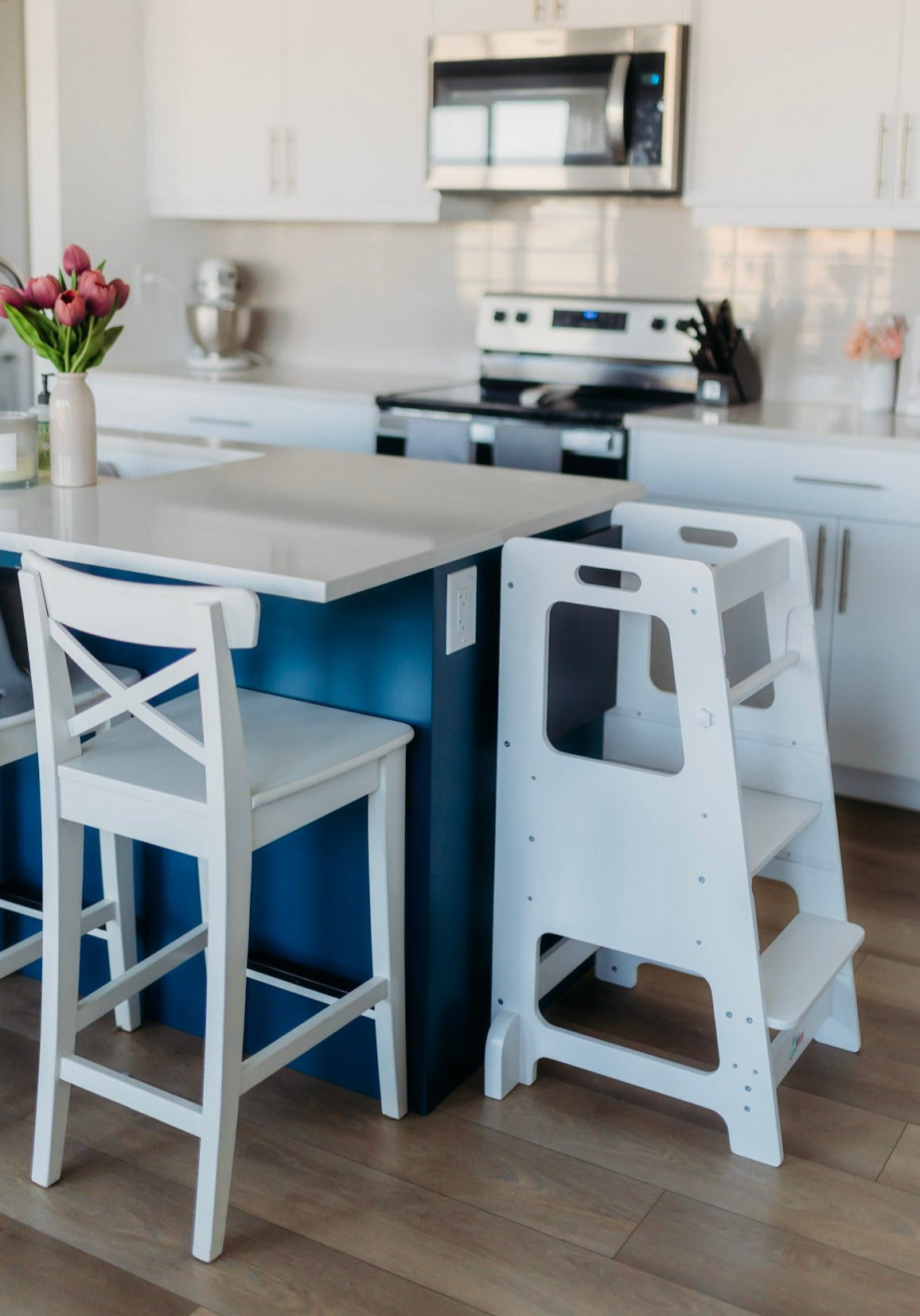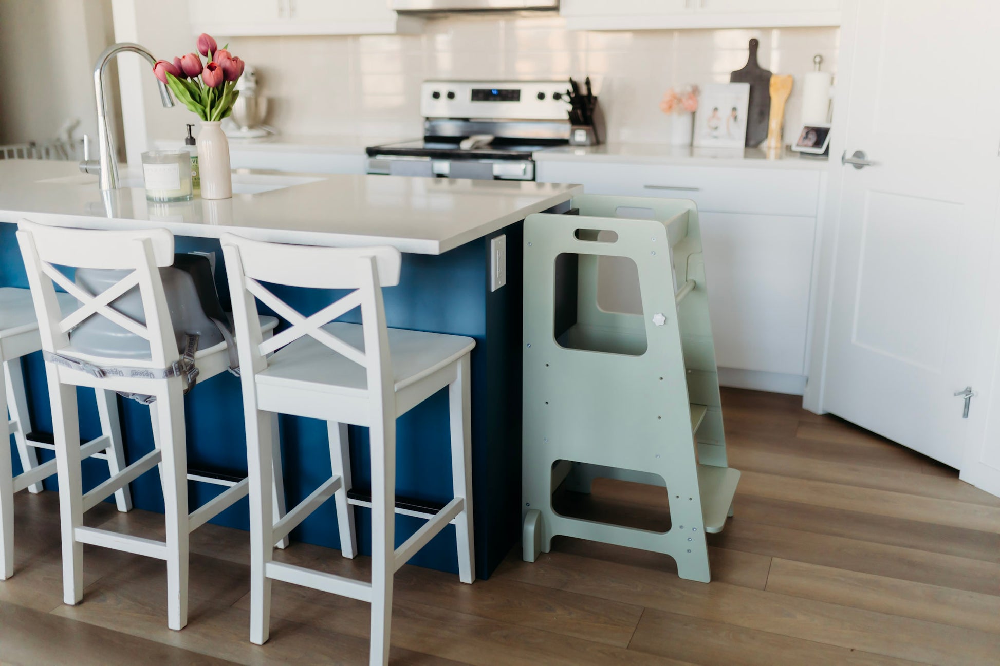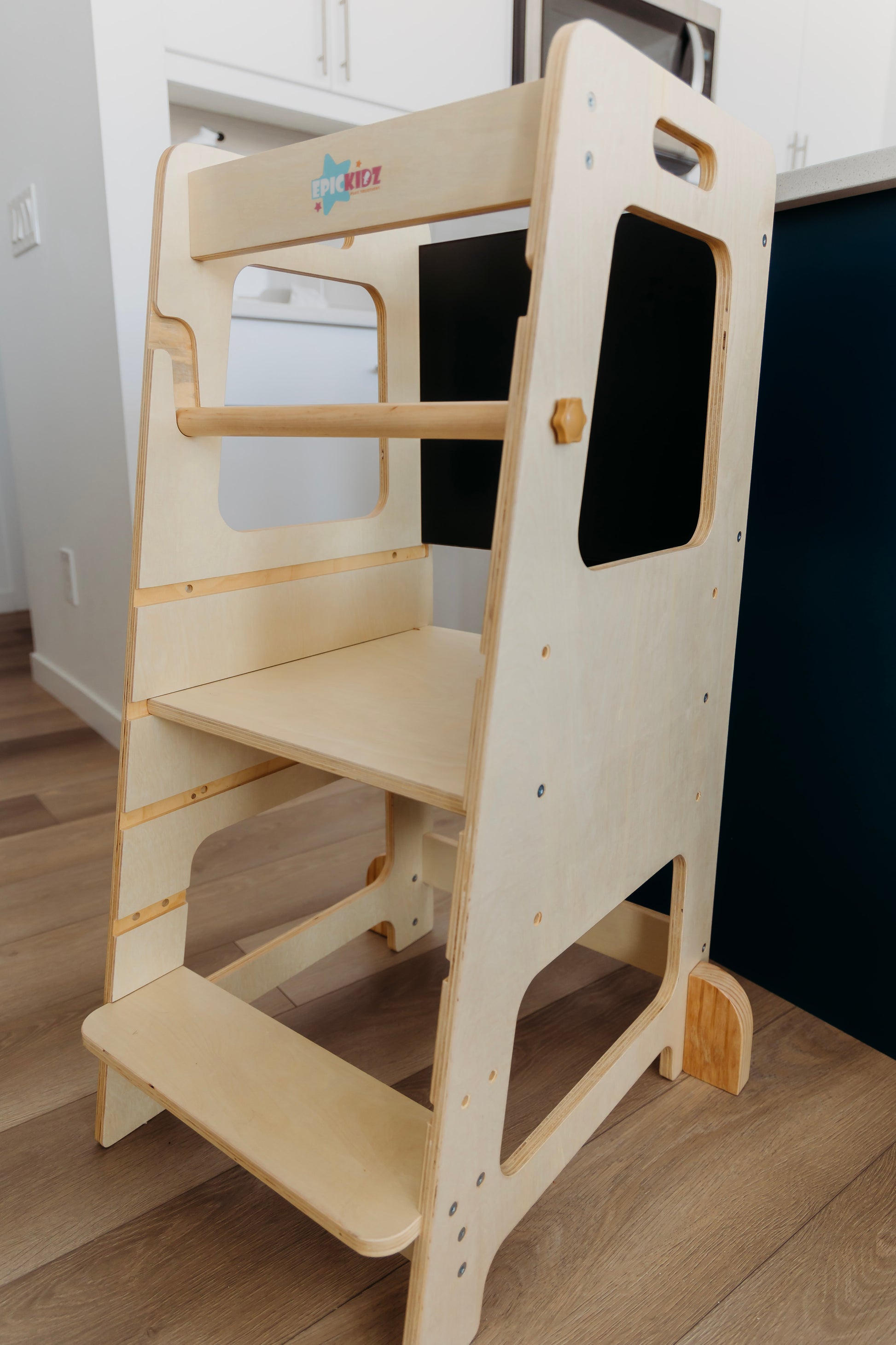Our height adjustable learning tower is a versatile product that helps raise your little one to counter height, giving them the chance to safely participate in activities. It's also great for exploring food or toys independently, building their self-esteem and confidence. It is designed for little ones to climb up on their own, and has multiple safety bars for added peace of mind.