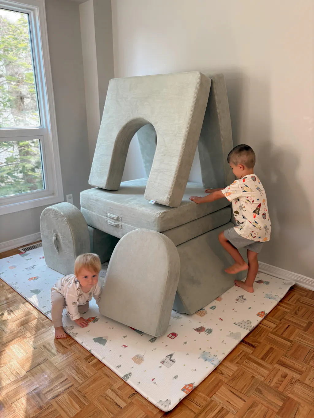 Ahh we ABSOLUTELY love our play couches !! We have the colour sage and itβs so pretty. I have a 4 year old and 11 month old and my boys literally play with this so much and from jumping or building they are having so much fun!!