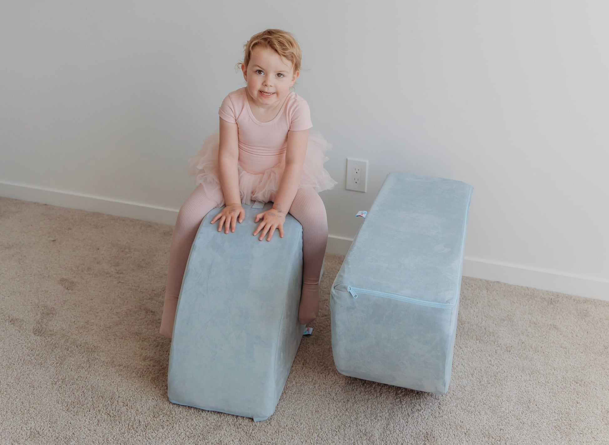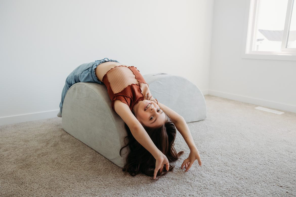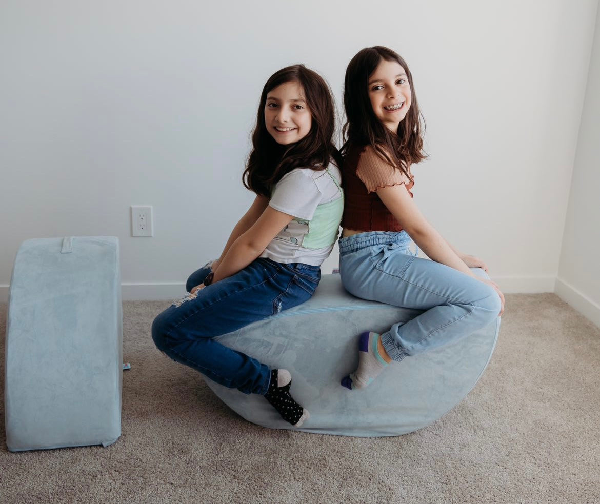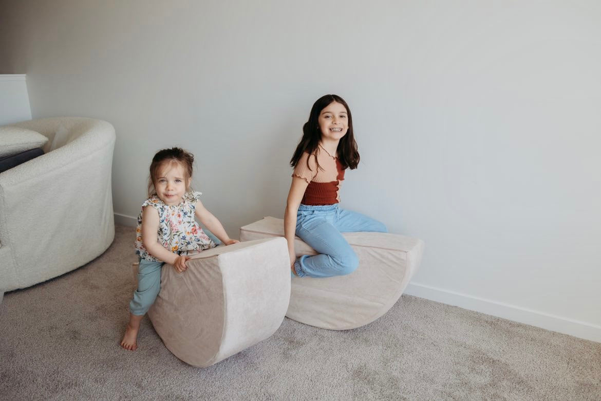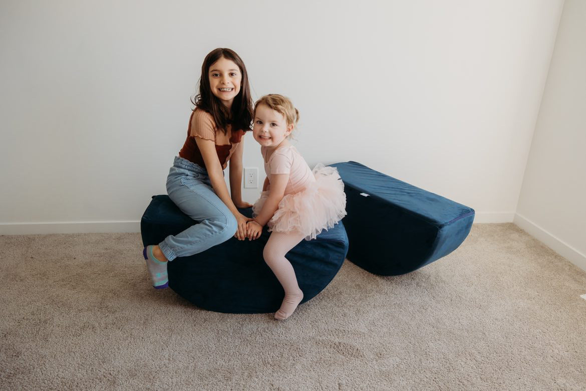 Use them as wheels in a tractor build, a stepping stool to a slide, a fun rocker, or place them side-by-side for a functional ottoman. They can also be placed under a play couch base to make a fun teetering platform!