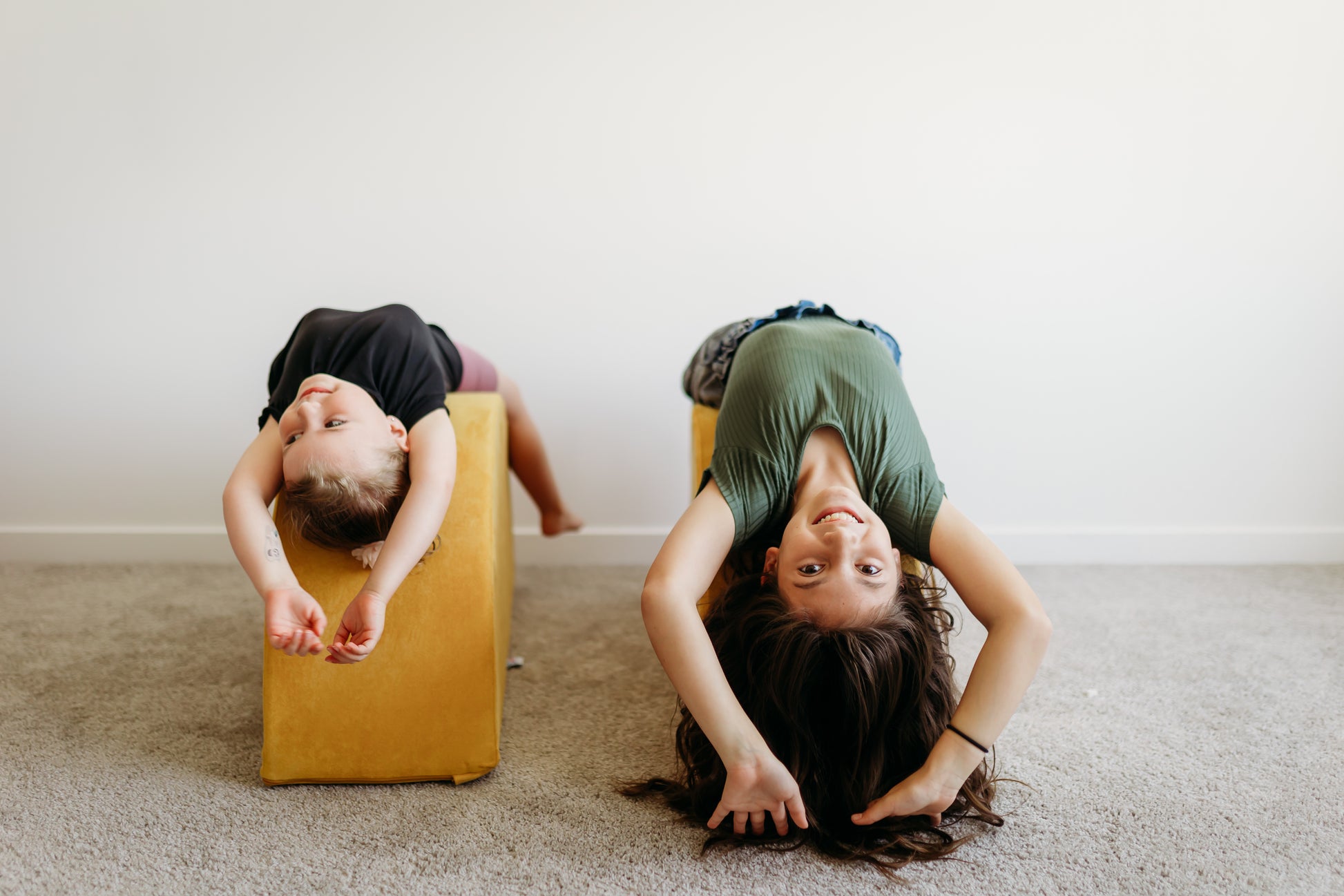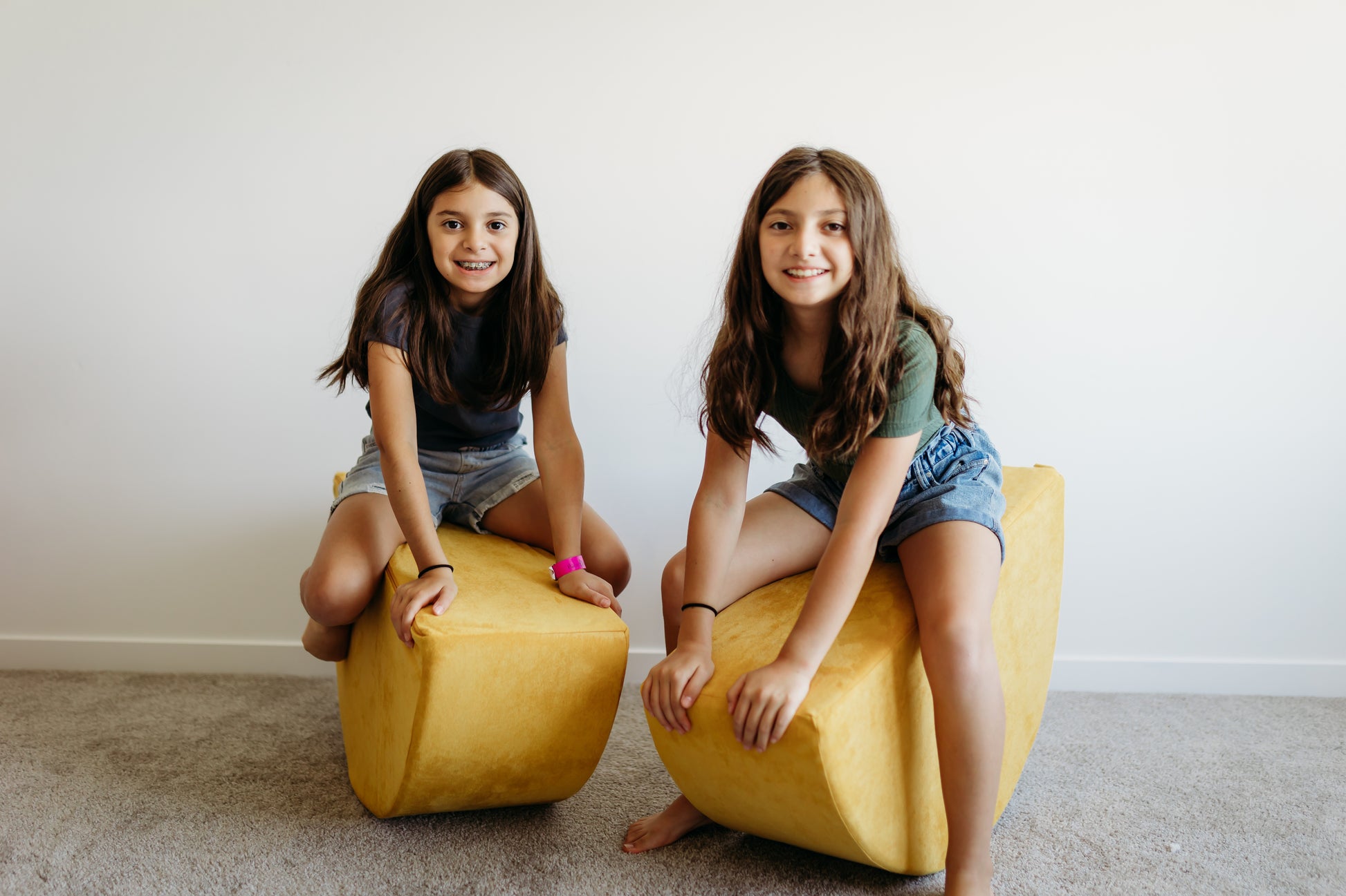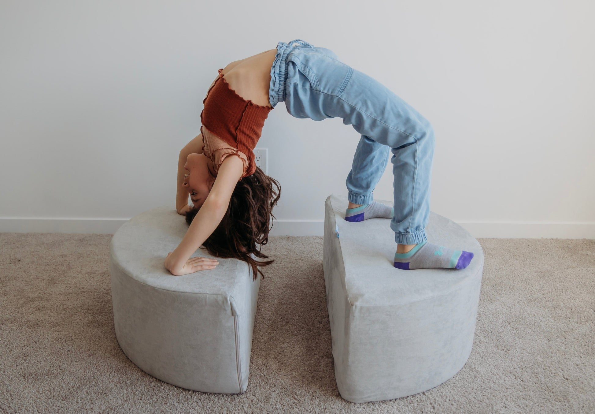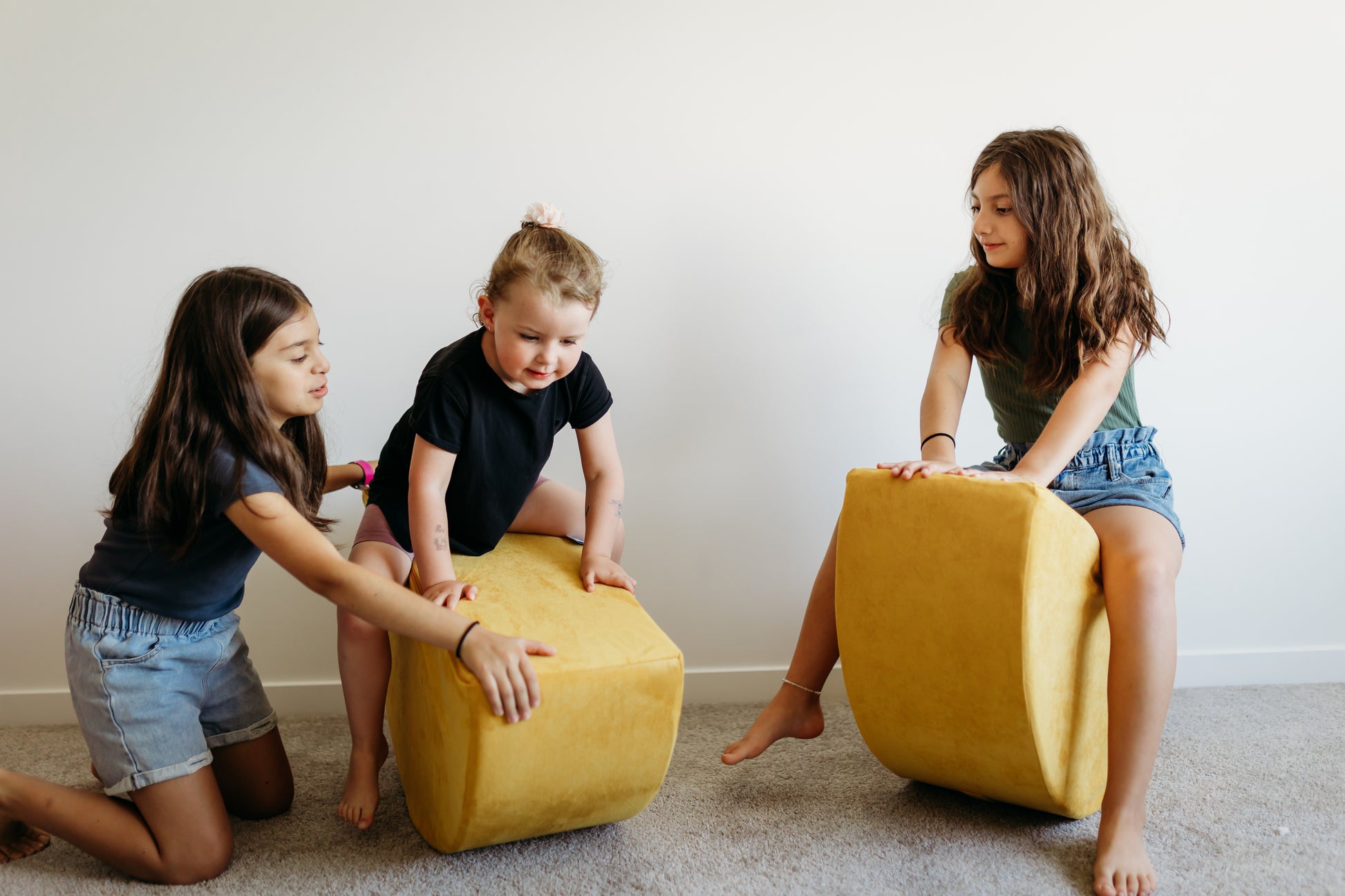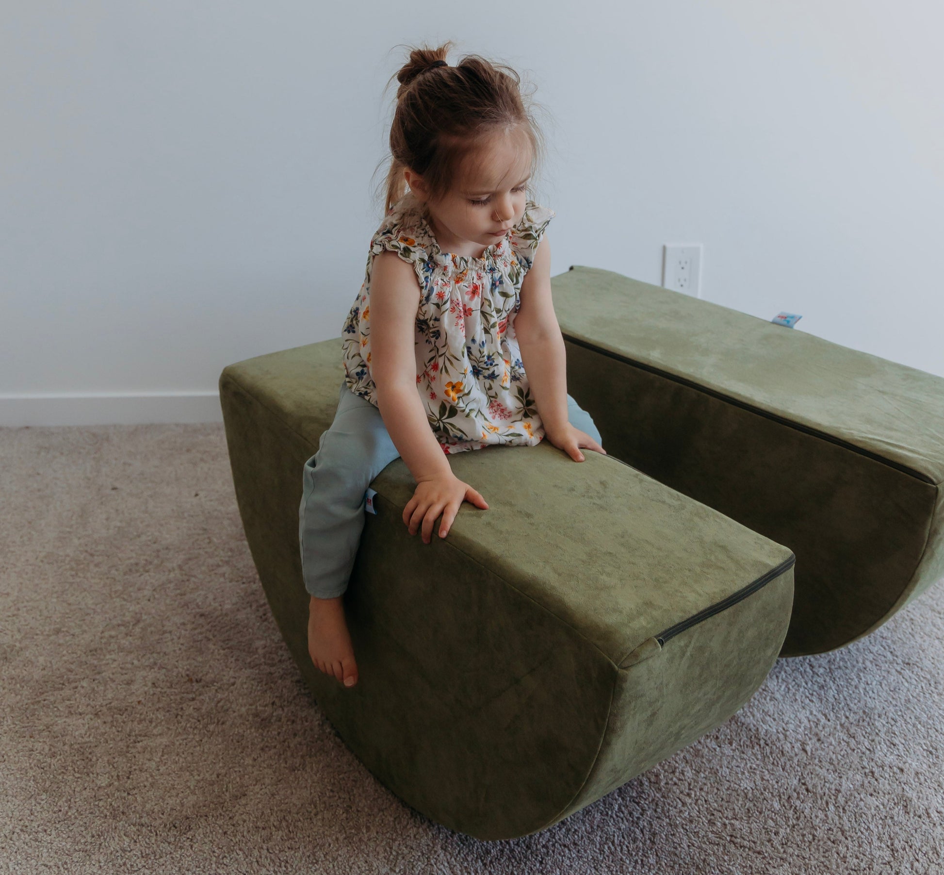 Use them as wheels in a tractor build, a stepping stool to a slide, a fun rocker, or place them side-by-side for a functional ottoman. They can also be placed under a play couch base to make a fun teetering platform!