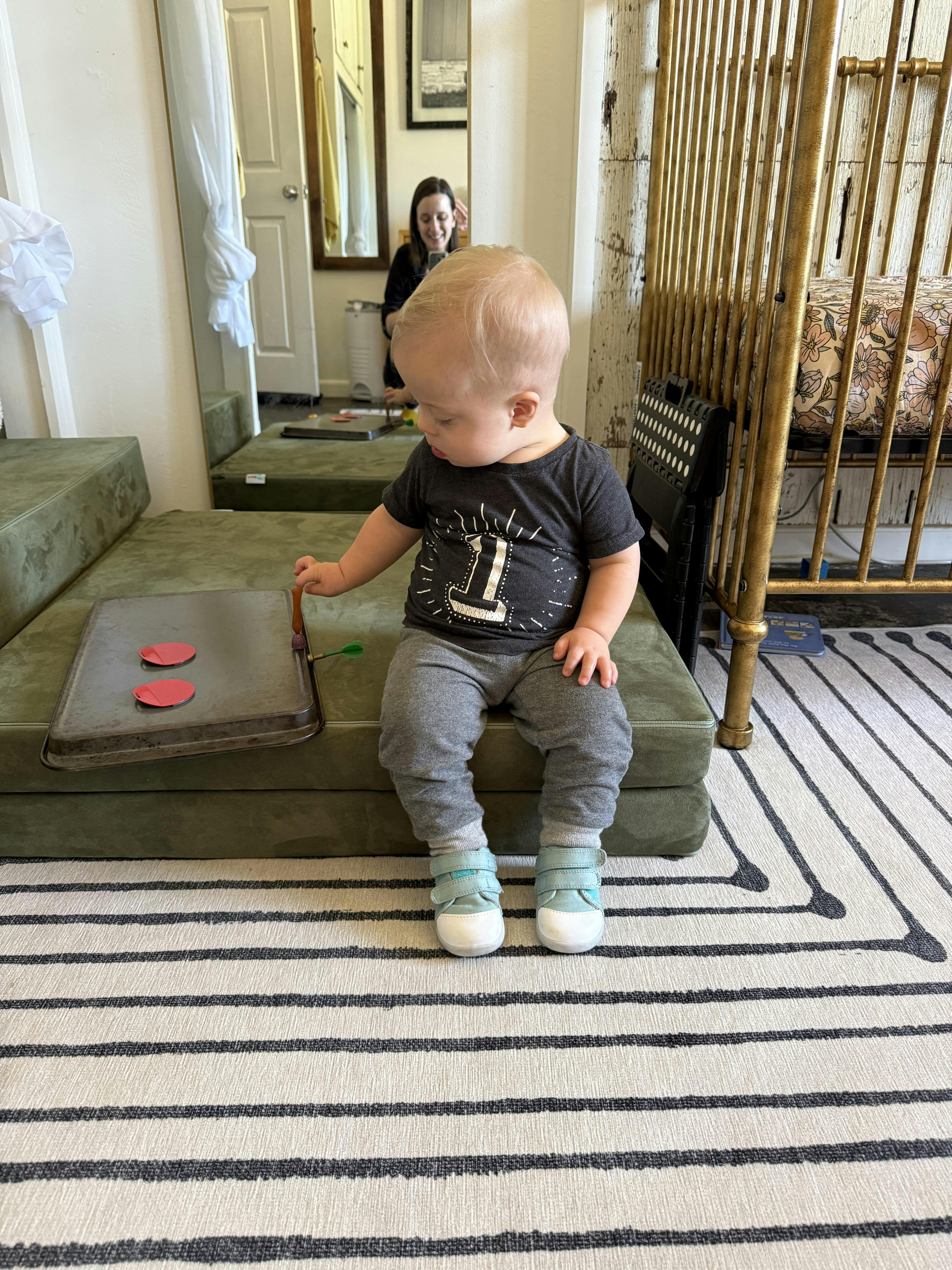 We are loving our epic lounger with full length triangles. It’s a couch, a slide, a tunnel, a castle, or just a place to jump around. And love that it’s waterproof and washable (for when the inevitable happens!)