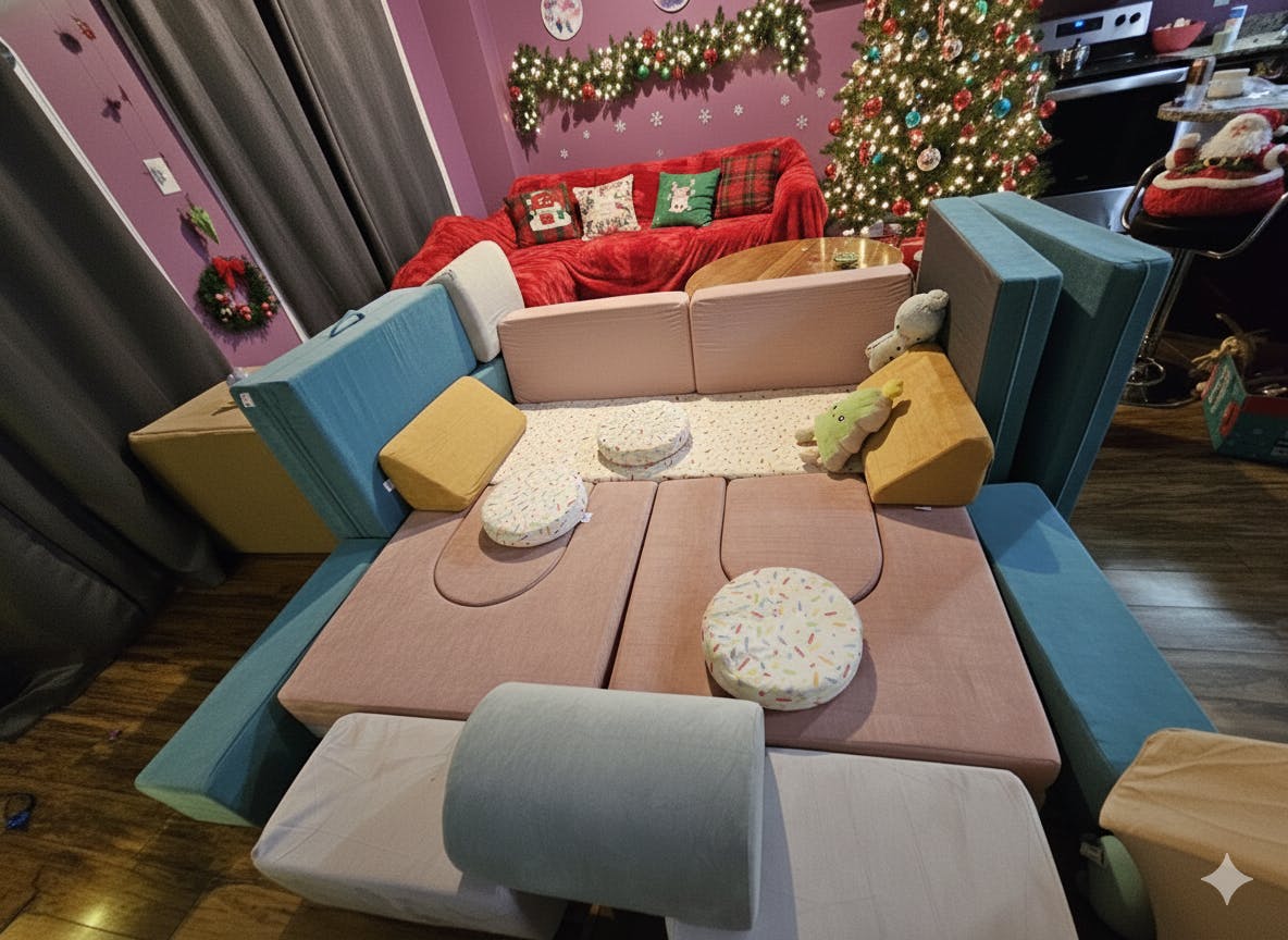 ✔️ Designed for creative play and imaginative builds. It also doubles as a comfortable couch for lounging or a sleep-over foam mattress.